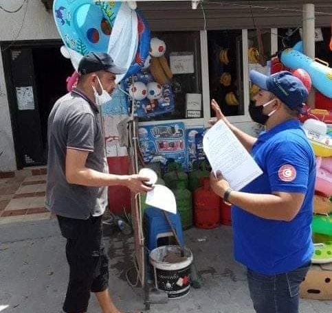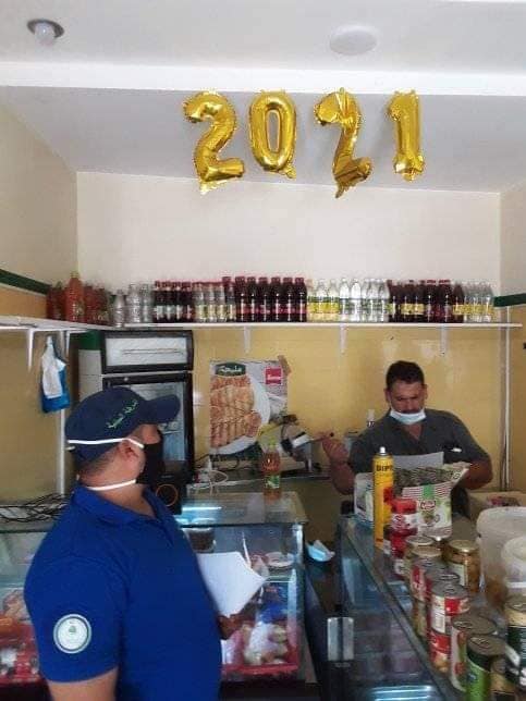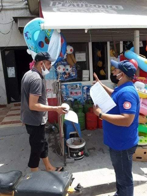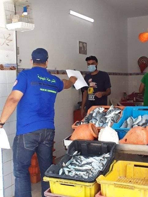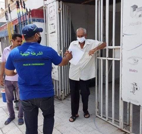 اعلام جميع المحلات المفتوحة و الباعة المنتصبين بالرحبة من طرف جهاز الشرطة البيئية بقرار رئيس البلدية الصادر بتاريخ اليوم الخميس 08 جويلية 2021 يتعلق بإتخاذ جملة من التدابير الوقائية للحد من تفشي فيروس كورونا بمدينة خنيس.
