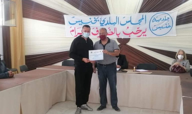 حيث تم تكريم العملة الذين ساهموا في الوقاية من تفشي فيروس كورونا أثناء فترة الحجر الصحي وخاصة الذين قاموا بعمليات التعقيم وذلك بتمكينهم من شهائد تقدير تثمينا لمجهوداتهم في هذا المجال.