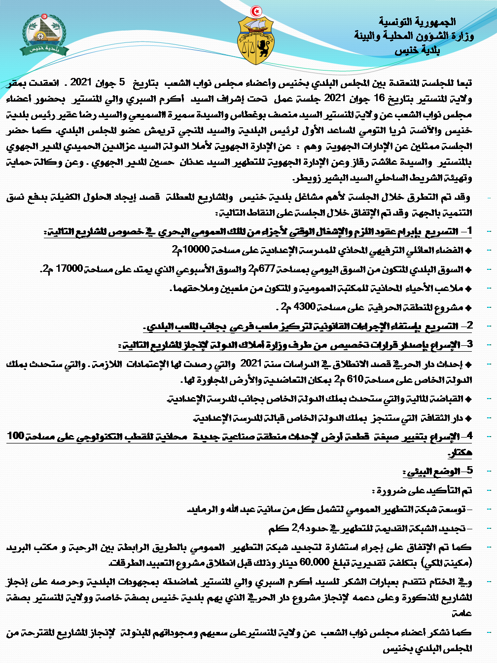 جلسة عمل بولاية المنستير ” مشاغل مدينة خنيس “