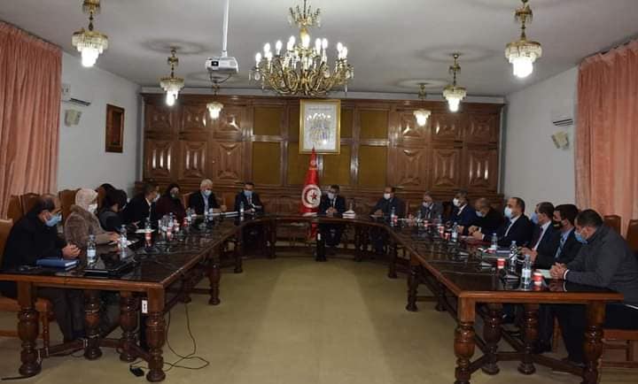اشرف السيد كمال الدوخ وزير التجهيز والإسكان والبنية التحتيّة ووزير الشؤون المحلية والبيئة بالنيابة، يوم الاربعاء 13 جانفي 2021، على جلسة عمل مع السيد #جلال_الزياتي عضو مجلس نواب الشعب عن ولاية #المنستير مرفوقا بعدد من السيدات والسادة رؤساء بلديات #خنيس السيد رضا عقير، السيد رئيس بلدية #قصيبة_المديوني محمد رضا الحاج سالم، السيدة رئيسة بلدية #منزل_كامل ليلى بن نجمة، السيد رئيس بلدية #زرمدين عمر بن عمر و السيد كاتب عام بلدية #بنان #بوضر بالنيابة عن رئيس البلدية بلال العريبي الذي نتمنى له الشفاء العاجل و كان ذلك بحضور كل من السيد اكرم القلال رئيس ديوان وزارة التجهيز والإسكان والبنية التحتية والسيد عادل قطاط رئيس ديوان بالنيابة وزارة الشؤون المحلية والبيئة وعدد من إطارات الوزارتين.
