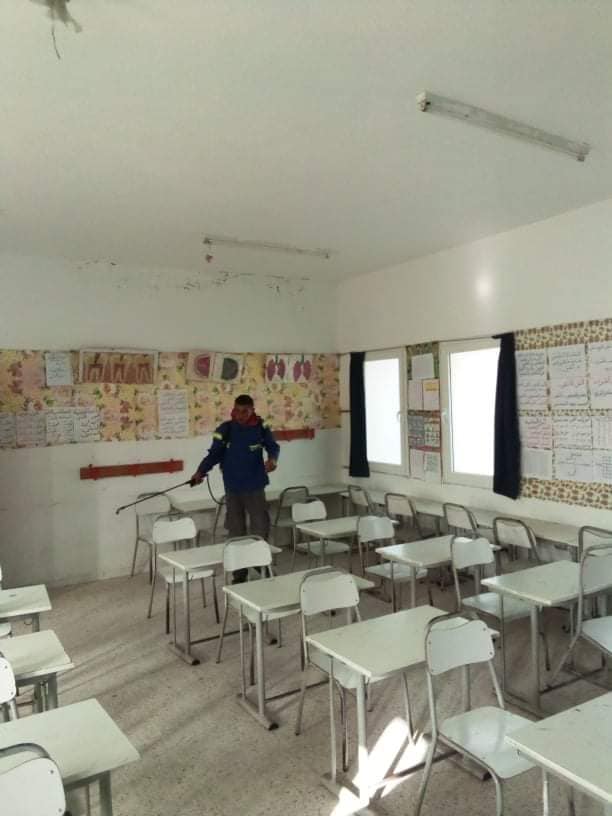 مواصلة حملات التعقيم للوقاية من كوفيد 19+ من طرف اعوان بلدية خنيس هذا اليوم الأحد 08 نوفمبر 2020 بعدد من المؤسسات التربوية ( مدرسة الهادي يوسف، مدرسة عمر الصكلي، مركز التكوين المهني) .