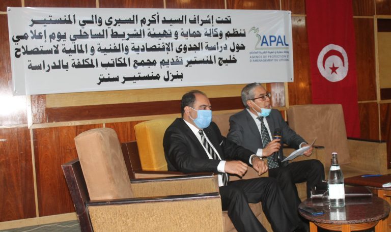 في إطار دراسة الجدوى الفنية و الاقتصادية لمشروع استصلاح و تهيئة خليج المنستير، اشرف السيد البشير عطية كاتب عام الولاية صباح اليوم الاربعاء 07 افريل 2021 بحضور السيد احمد شاكر مدير عام وكالة حماية و تهيئة الشريط الساحلي و حضور ثلة من الإطارات الجهوية و رؤساء البلديات المتاخمة لخليج المنستير فضلا عن حضور ممثلي مجمع مكاتب الدراسات و ممثلي المنظمات الوطنية و ممثلي مكونات المجتمع المدني، على فعاليات يوم إعلامي خصص لعرض نتائج المرحلة الأولى من دراسة الجدوى من إحداث منطقة ذات نشاط اقتصادي مستدام لمشروع استصلاح و تهيئة خليج المنستير.