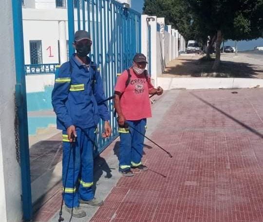 في إطار حملة جهوية للتوقي من فيروس كورنا قام اعوان بلدية خنيس اليوم السبت 10 أكتوبر 2020 انطلاق من الساعة 13:00 بتعقيم المؤسسات التربوية. مدرسة